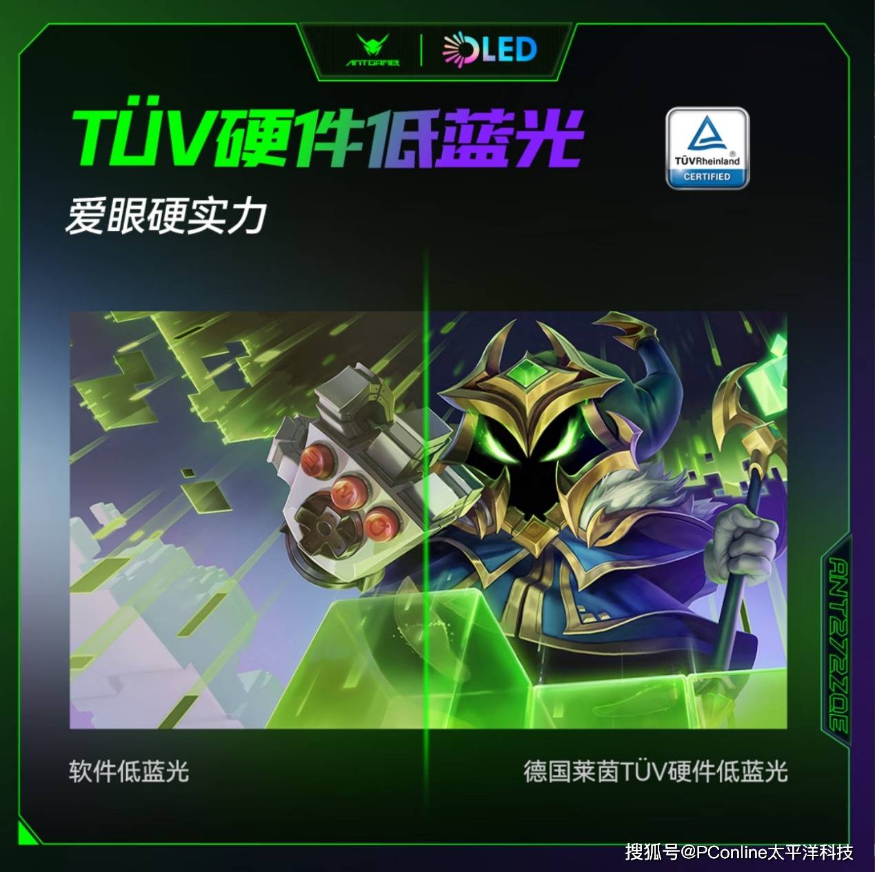长时间面对屏幕,“伤眼”是所有玩家和办公族共同的痛点。蚂蚁电竞ANT272ZQE采用了硬件级低蓝光技术,并通过了严苛的UL认证,确保了低蓝光与无频闪设计。与传统的软件防蓝光不同,硬件低蓝光能从根源上过滤有害短波蓝光,同时保证画面色彩不发黄、不失真,极大缓解了长时间使用带来的视觉疲劳。自研的OLED面板保护机制,也避免长时间使用烧屏的风险。