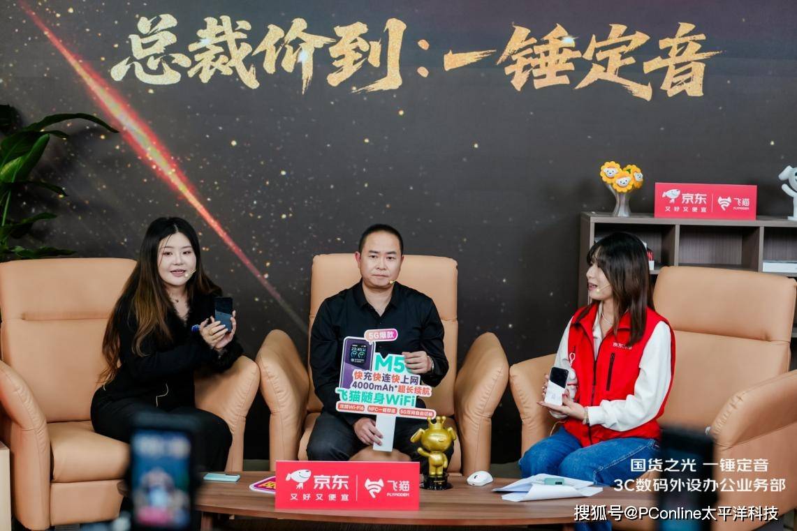 得力率先出场,整场直播紧密围绕“国民办公神器”的定位展开,以高性价比解决方案直面用户痛点。得力电商市场总监林晨雨在砸向“耗材成本高”金蛋时笑道:“这一锤,咱们砸掉的是用户的焦虑,送出的是一整年打印不心疼”,直播间随之放出大印量打印机85折叠加券、标签机免单等多重福利。飞猫则凭借“新锐黑科技”形象,聚焦移动办公场景下的用网难题,飞猫副总裁温松樵面对“流量不够用”痛点,一锤落下豪气宣布:“飞猫不做表面功夫,10年流量免费送。”伴随金蛋绽开的,是飞猫M50 5G随身WiFi半价抢、AI会议神器M8 Pro一元秒杀等硬核福利。