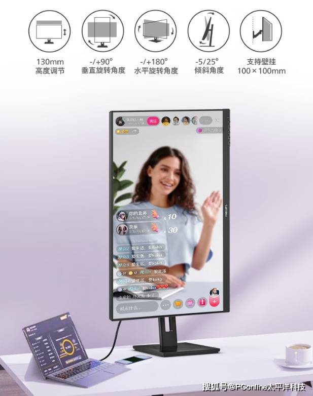 飞利浦27B1U3600支持130mm的高度调节范围,能适配不同身高的使用者,-5°至25°的倾斜角度可根据桌面高度微调,而±90°垂直旋转与±180°水平旋转的功能,更是满足了特殊场景需求,比如程序员写代码时竖屏显示更方便查看长代码,设计师展示作品时横屏旋转角度能让客户看得更清晰。如果追求极简桌面,还能拆除底座采用壁挂安装,进一步节省空间。
