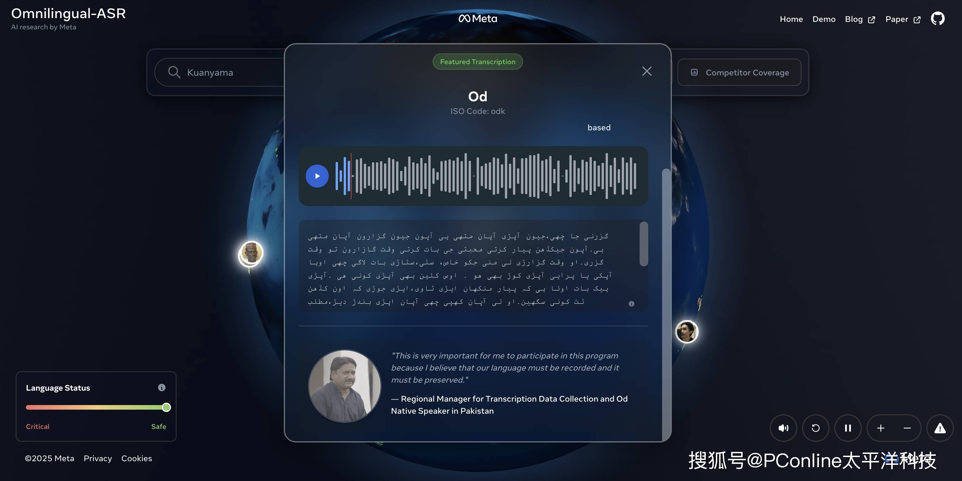 数据集发布:Meta同步推出了“全语言自动语音识别语料库”(Omnilingual ASR Corpus)。这是一个包含了350种代表性不足语言的大型转录语音数据集,以CC-BY(知识共享署名许可)协议发布。