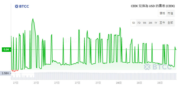 截止 6 月 27 日,CEEK 的交易价格为$0.03793,在过去 24 小时下跌了 2.2%。