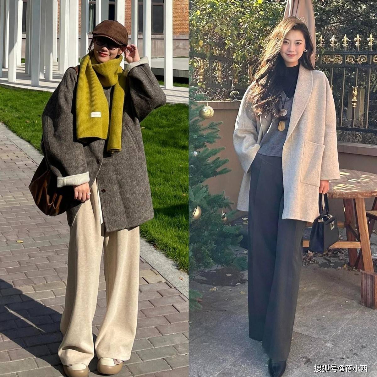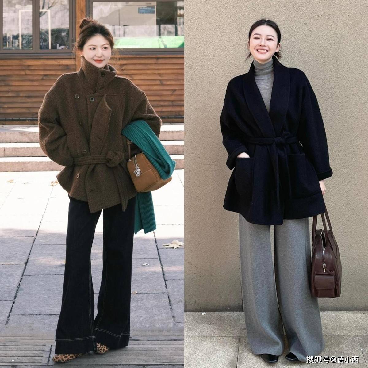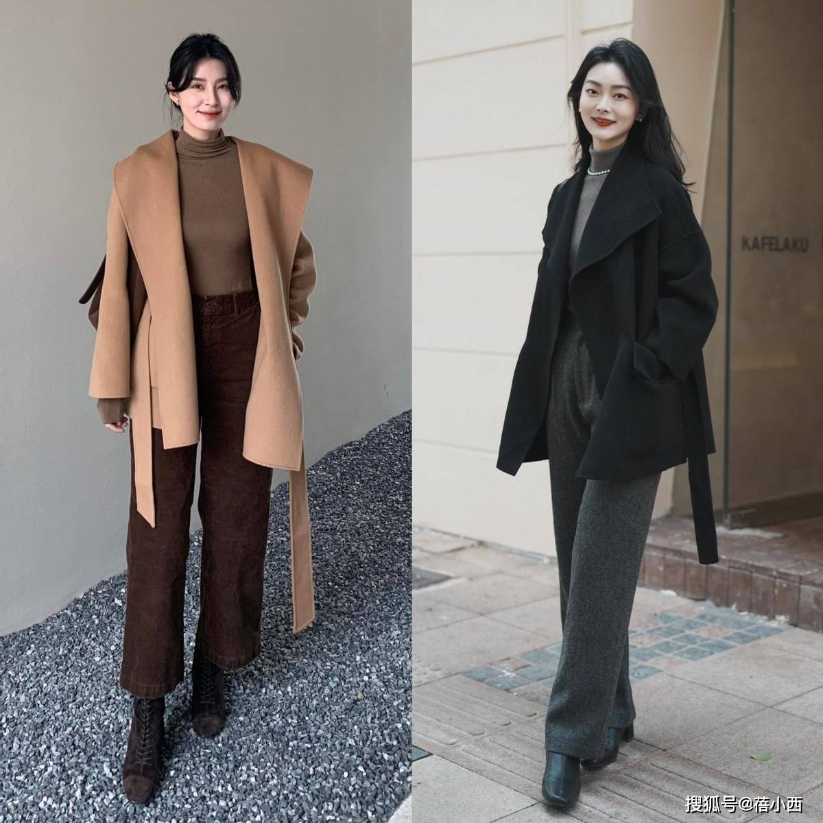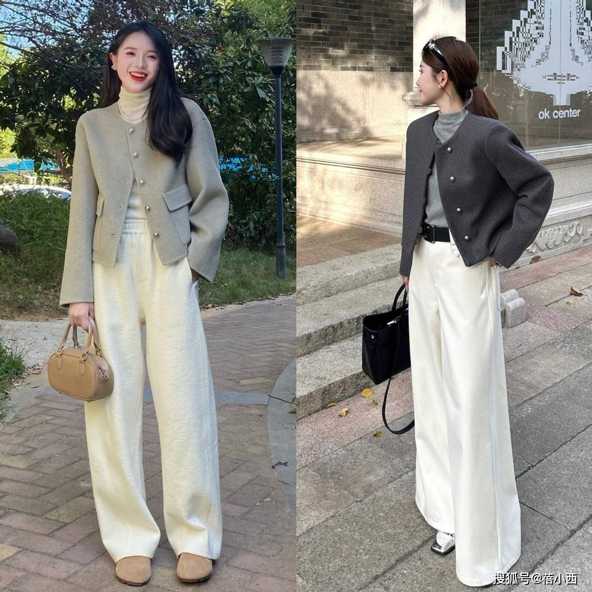短外套和阔腿裤也是很合拍的组合,不过,阔腿裤的选款核心是“垂感+高腰”,高腰设计是显高的关键,能直接拉长下半身比例,搭配短外套形成“上短下长”的黄金比例,视觉上显高5cm不是问题。