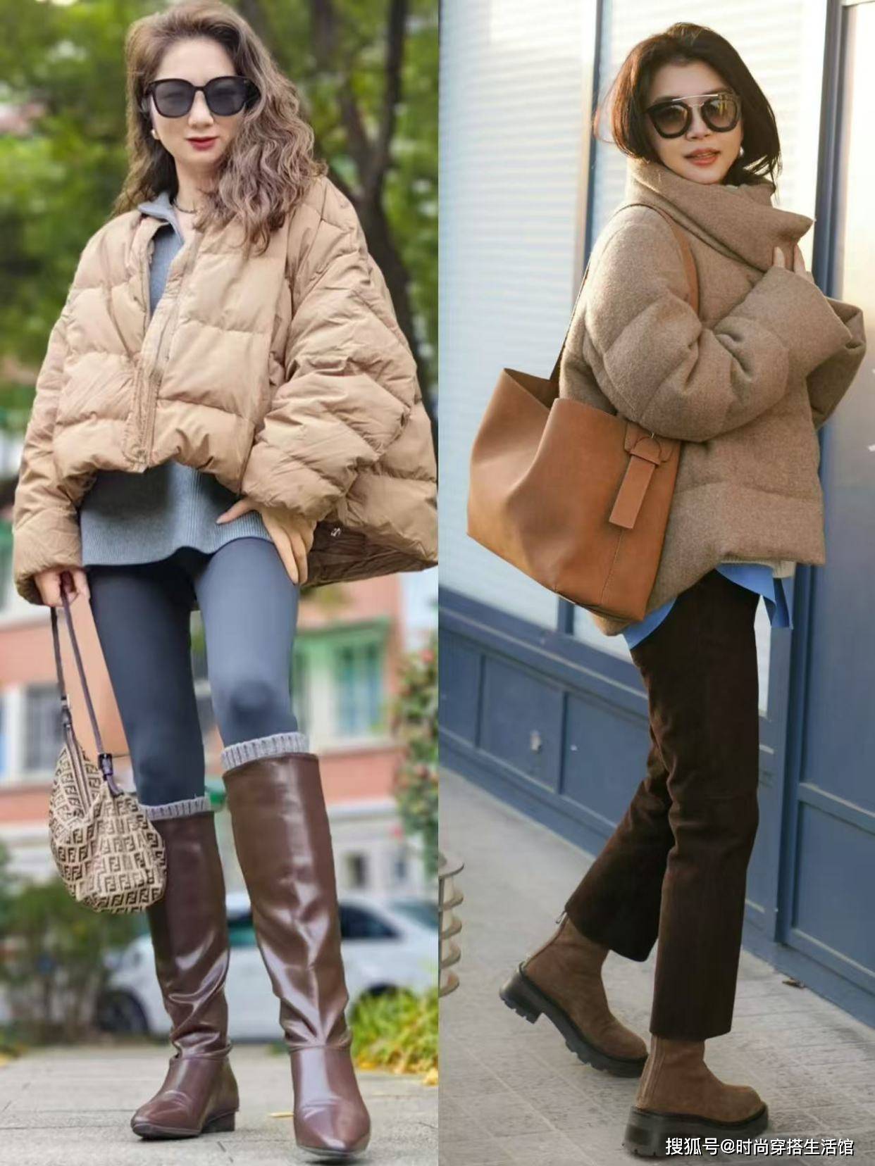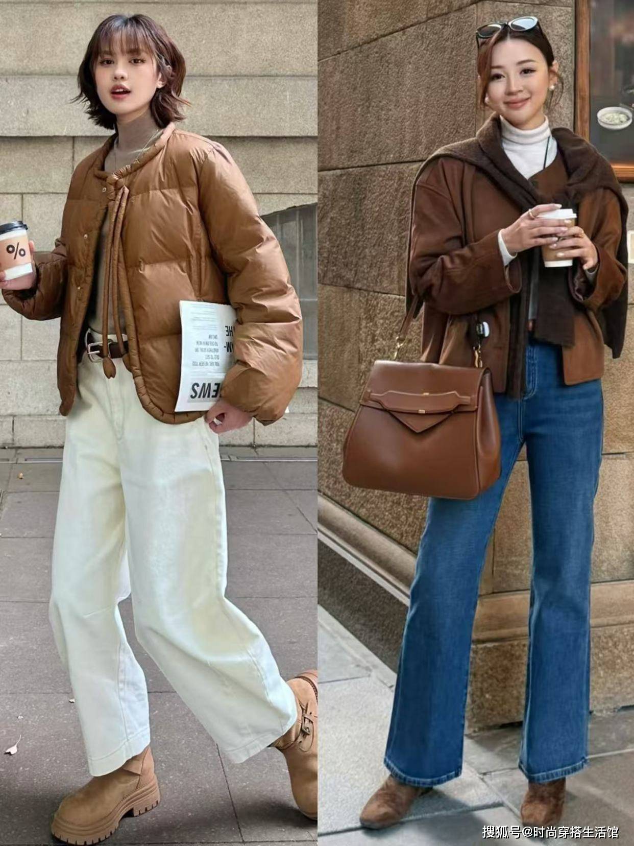 驼色羽绒服与驼色大衣一样,是冬季最不能缺少的必备款,由于色系醇厚质感,哪怕大面积采用也不会产生审美疲劳,叠穿同色系或者黑色打底衫和裤装,简洁且一目了然。