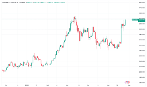 昨天的以太坊(ETH)市场真是让人兴奋啊!5月27日,ETH的价格继续上涨,交易者们推动价格从3886美元逼近4000美元大关,当天涨幅达到了3.5%。这可不是小打小闹啊!