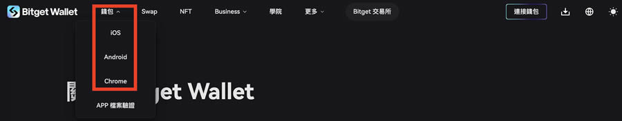 进入 Bitget Wallet 官网点击左上方「wallet」,依据不同的作业系统(iOS、Android)分别下载安装。
