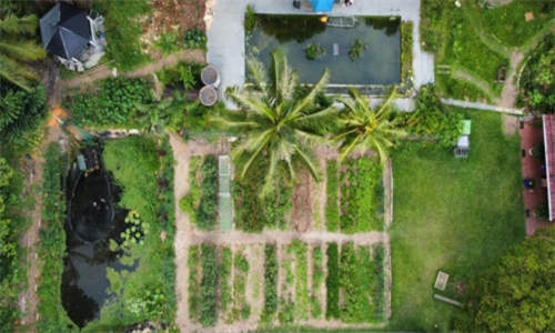 这座豪宅的花园被改造成了一片迷你农田,种植着各种蔬菜、香草、水果,同时还养殖鱼类和家禽。原来的草坪变成了36个菜园,种植着秋葵、菠菜、豆类、羽衣甘蓝、芝麻和萝卜。游泳池也被改造成了一个天然池塘,里面有水草、溪流和各种鱼虾。这座农场还举办各种私人聚会,吸引了不少关注。