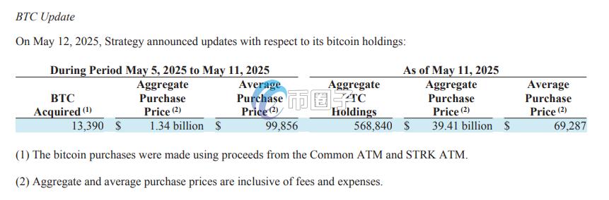 美国上市公司微策略(Strategy),作为业内知名的数字资产巨头,再次引发关注。该公司宣布,在5月5日至5月11日期间,斥资13.4亿美元,购入了13,390枚数字资产,平均购买价格为99,856美元。
