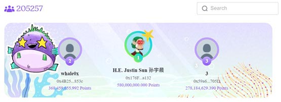 现在大约有 20 万个地址参与了 Puffer Finance 的活动。有意思的是,按照积分排名,第一名居然是波场区块链的孙老板,他投入了超过 25 万枚 stETH。