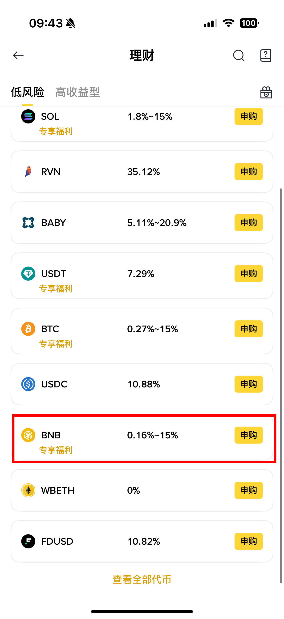 - 需承担 BNB 币价波动风险:投入 BNB 理财需要承担 BNB 币价波动的风险。