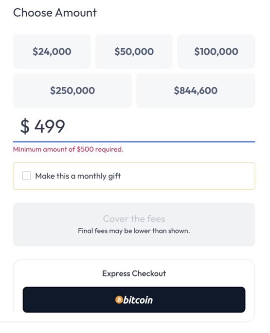 根据网站信息,最低捐款额度为500美元。川普团队不仅拥抱闪电网络,还在5月11日表示已准备好拥抱新技术。声明稿中提到,可以使用Coinbase Commerce产品接受的任何加密货币进行捐赠。
