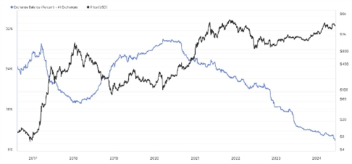 另外,交易所内的以太坊供应量已经跌到了近八年来的最低水平,这说明市场上对以太坊的需求可能正在增加。分析师们认为,这种供不应求的局面可能会转化为更多的上涨动力,进一步推高以太坊的价格。