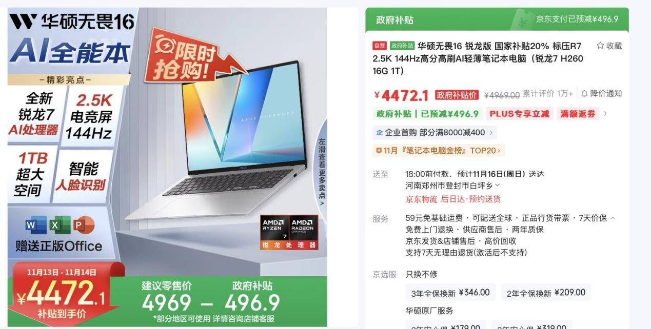 值得一提的是,哪怕大促刚刚过去,但华硕无畏16 2025仍然能享受国补优惠,这就意味着何时入手都是稳赚不亏!到手仅4472.1元(具体政府补贴信息请咨询官方客服)。需求有了预算到手就能随时随地享受,这样的变化更能让人感慨科技进步的力量。
