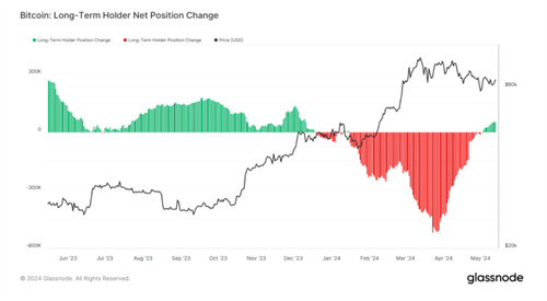 Glassnode的数据显示,之前在2023年下半年出售了10亿枚比特币的长期持有者们,现在又开始积累比特币。这种购买行为通常被视为比特币潜在上涨的信号。
