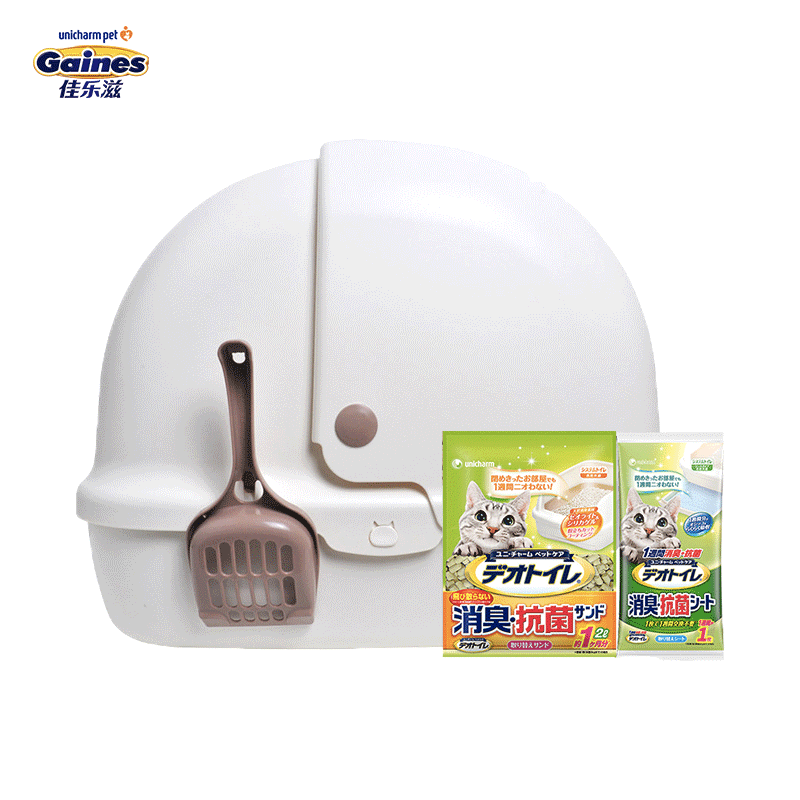 日本进口 佳乐滋(Gaines)双层猫砂盆套装/猫厕所 全封闭象牙白色 干湿分离 干垃圾