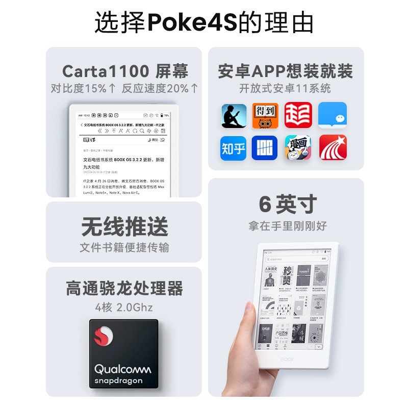 - 优惠券:满500减20BOOX文石POKE4S电子书阅读器采用2.0GHz四核处理器。采用全新Carta1100墨水屏,对比度更高。配备安卓10操作系统,兼容更...阅读全文