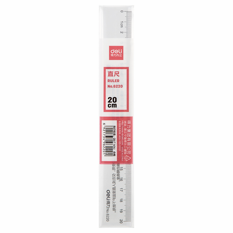 - deli得力6220透明耐磨材质刻度清晰,可长久使用。直尺采用PS材质制成,纯净透明,耐磨耐用,可方便读取数值,20CM测量规格,可满足日常使用需求。该直尺一次...阅读全文